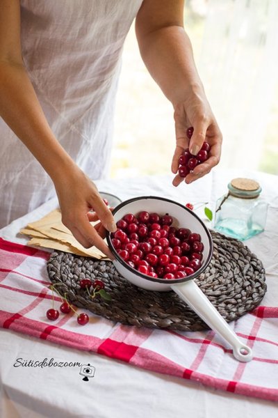 Megmosom és kimagozom a meggyet, majd félreteszem.