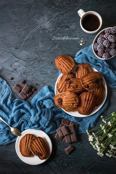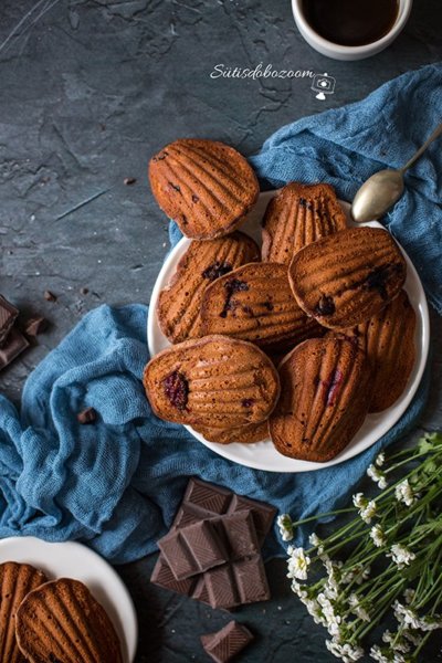 Hihetetlenül egyszerű lesz elkészíteni, mint általában a madeleineket. A vajat olvasszuk meg és amíg meleg, keverjük hozzá az apróra tört csokoládét, hogy jól megolvadjon. Amíg kicsit hűl a vaj, keverjük habosra a tojásokat a porcukorral. Adagoljuk hozzá a lisztet, sót és a vajas csokoládét és keverjük jól össze. Ezután jöhetnek a megmosott szedrek, akár fagyottan is beledobálhatjuk fagyottan is. Keverjük jól bele a tésztába.