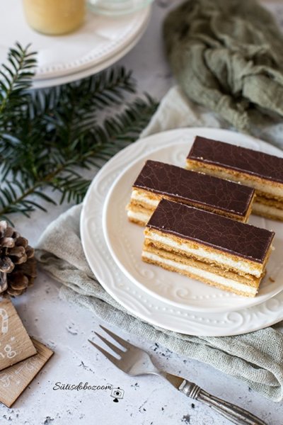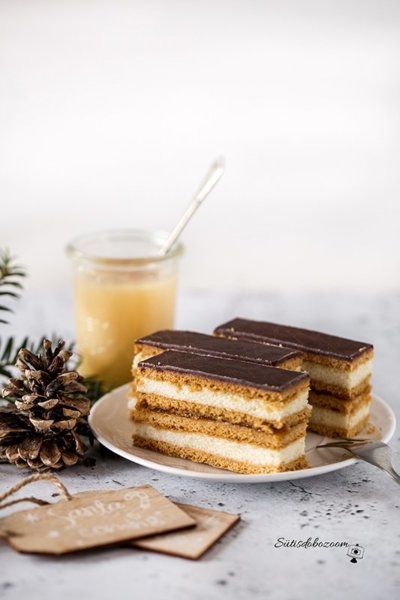 A forró tejhez keverjük a kakaóport és a porcukrot, jól keverjük össze, hogy felolvadjon benne minden, majd keverjük hozzá az olvasztott tejet. Ezt keverjük addig amíg jó sűrű nem lesz. Amint elkészült, kenjük meg vele a tésztánkat és tegyük be a hűtőbe egy éjszakára. Másnap szeleteljük fel.