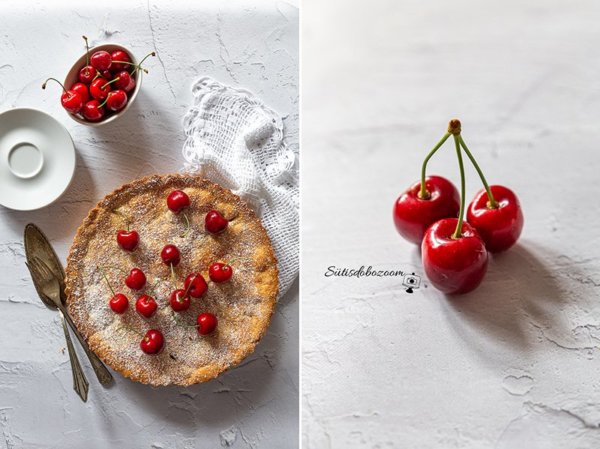 Nem igazán reméltem, hogy a májusi hideg és nagy esőzések ellenére jó lesz az idei cseresznye termés, de tévedtem. Bár a roskadozó fán sajnos, csak minden második cseresznye volt ép, és szép, azért így is sikerült pár kosárral szedni. A lekvár főzés mellett, készítettem egy gyors pitét is, amihez egy kis darált mogyorót is használtam, de ezt el lehet hagyni, vagy akár mandulával is helyettesíthetjük.